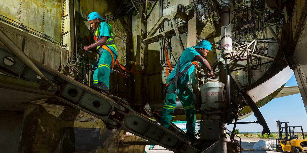 Serviceable parts, engines and avionics represent the most value of a phasing-out aircraft. We provide recovery of these parts for further use as spare parts for fleet maintenance and take care of the waste recycling of the dismantled aircraft.